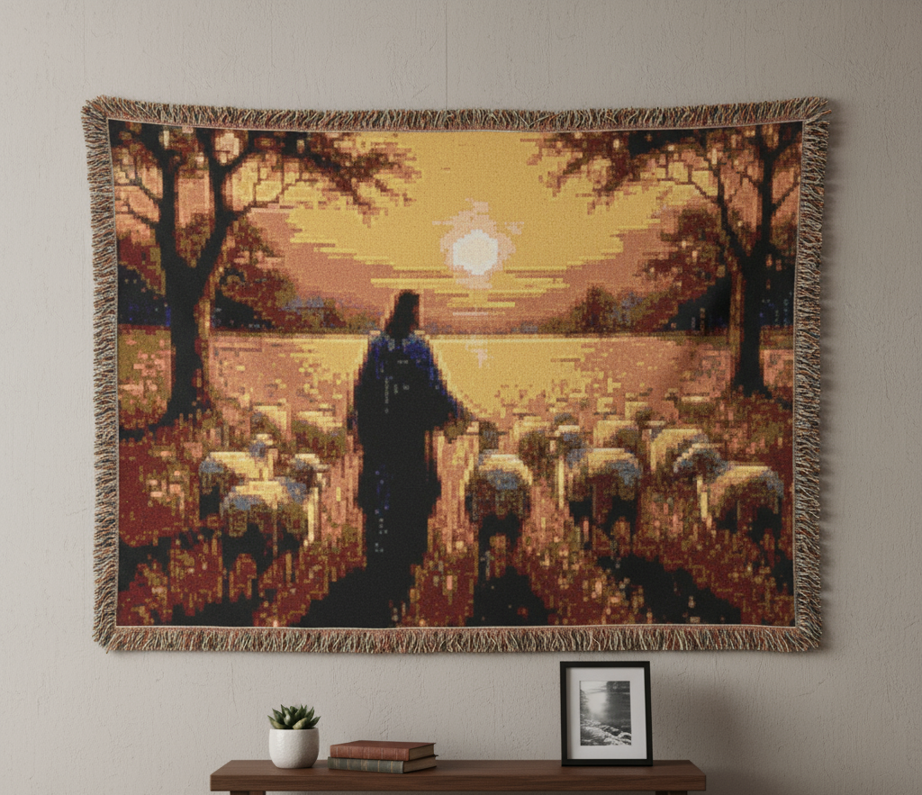 Every detail of the ‘Jesus Walking with Sheep’ motif is carefully woven to bring meaning and inspiration to your home. A beautiful reminder of faith and comfort, made to cherish for years